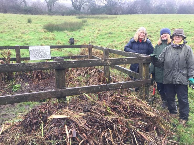 An annual makeover of this well loved local heritage feature was carried out by four Morcombelake villagers – despite a soggy January Saturday morning. Battling overgrown buddleia and carpet of croscosmia that does well in these parts, the Well can now be seen! The Well is one of many of hidden heritage gems in our local landscape.